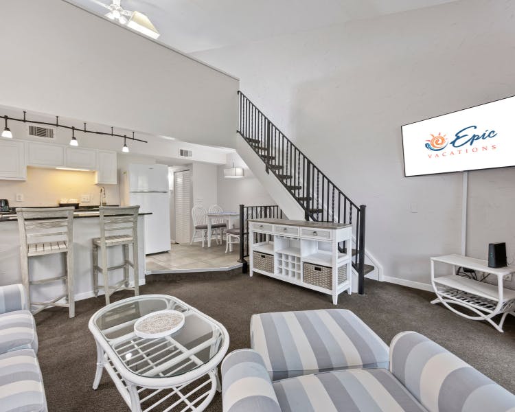 Guests love the open layout with vaulted ceilings, the upstairs loft with its own seating area and TV, and the welcoming coastal décor that creates a true island escape. With central A/C, modern appliances, and complimentary Wi-Fi, you’ll have everything you need for a comfortable stay.